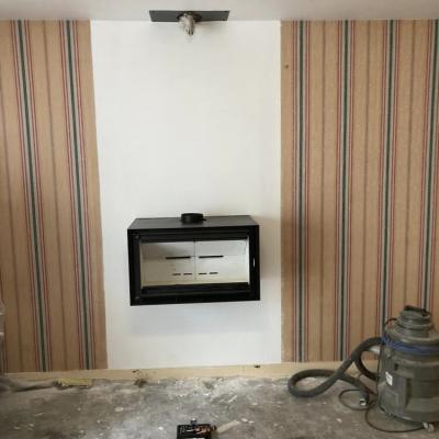Fourniture et pose d’un poêle à bois suspendu Scan avec création d’un conduit de fumée intérieur