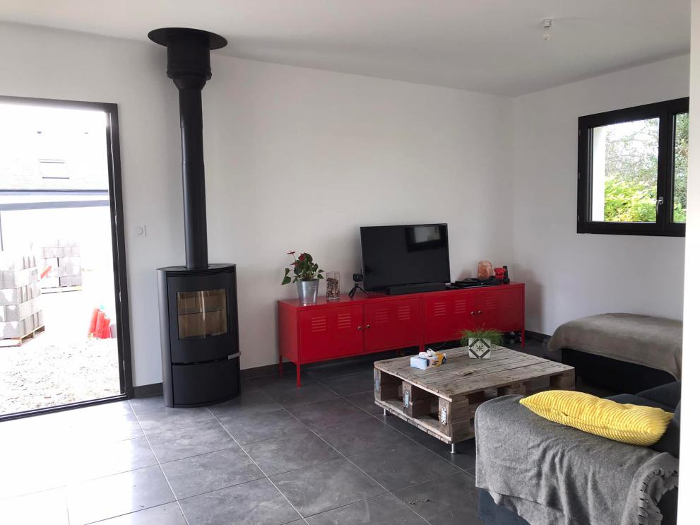 Fourniture et pose d’un poêle à bois Odyssée Design dans une maison neuve