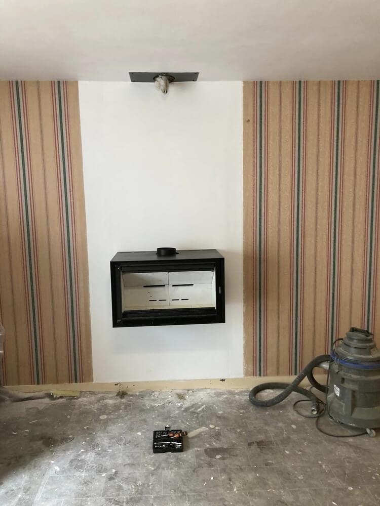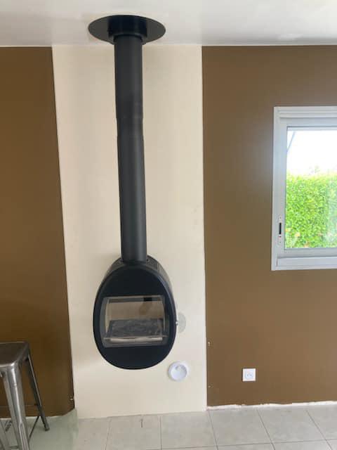 Fourniture et pose d’un poêle à bois suspendu Scan avec création d’un conduit de fumée intérieur